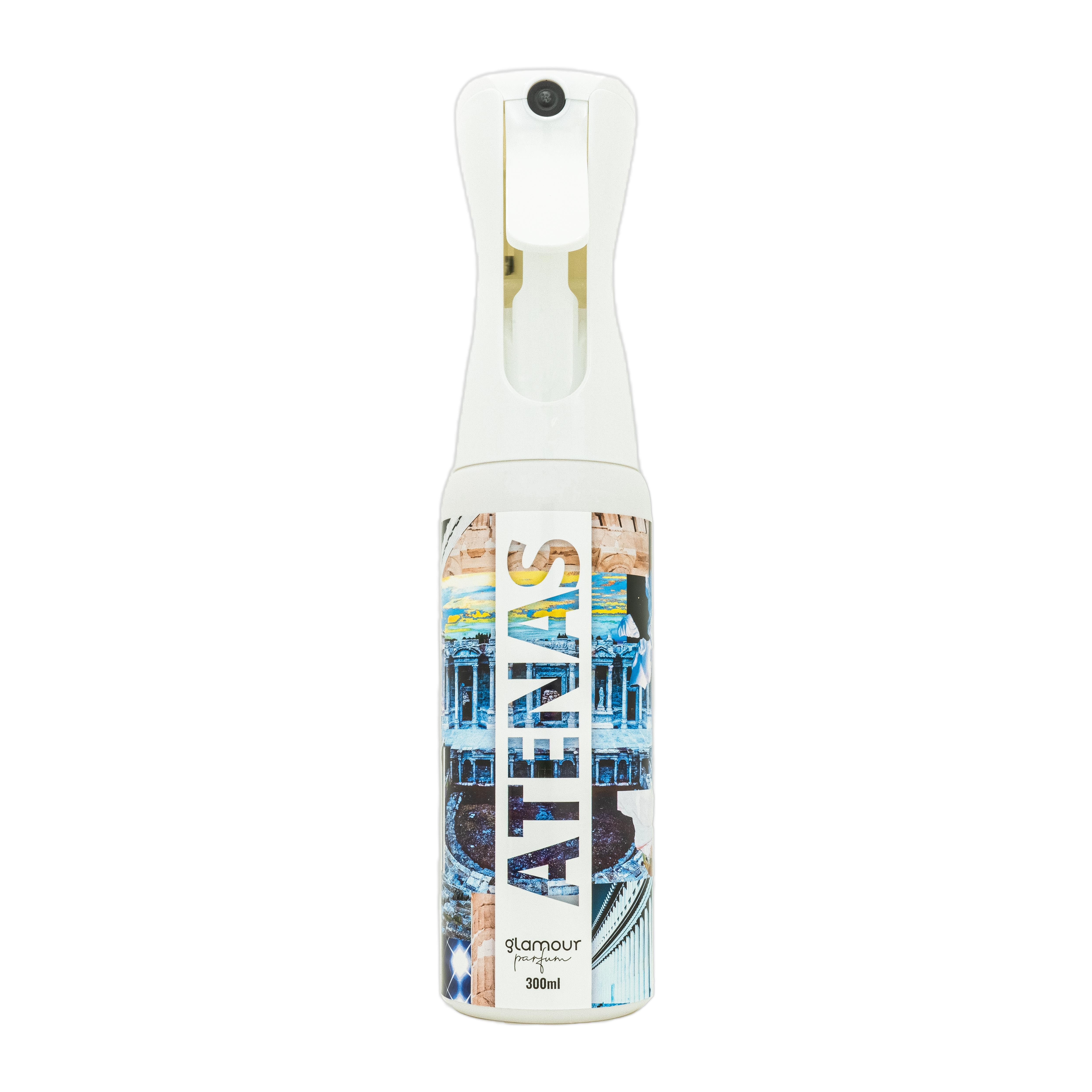 GLAMOUR PARFUM - Ambientador de Hogar Atenas - 300 ml - Pulverizador con Aroma Fresco y Cítrico - Ambientador Textil en Spray - para Pulverizar en la Cama o en Cortinas - Reutilizable