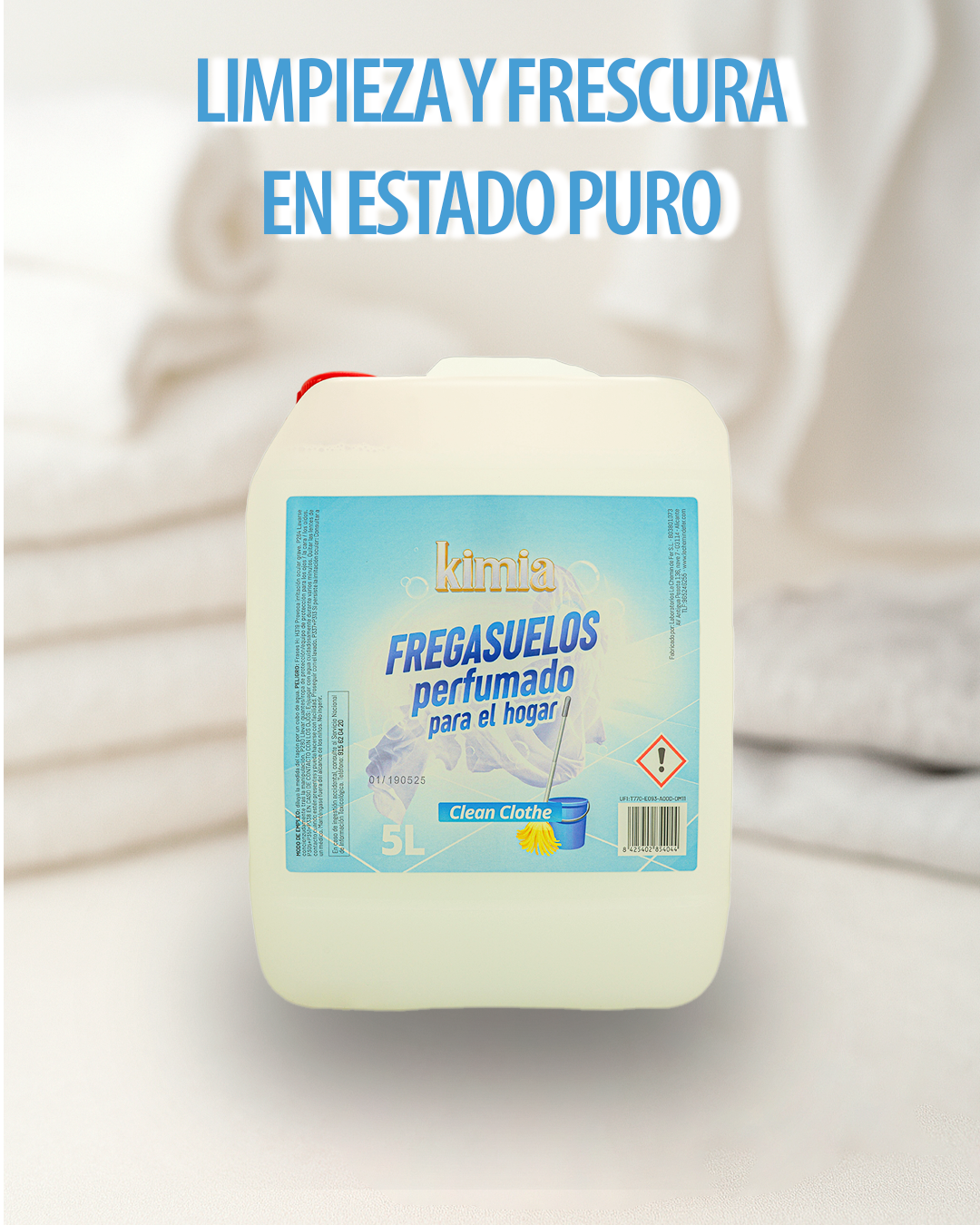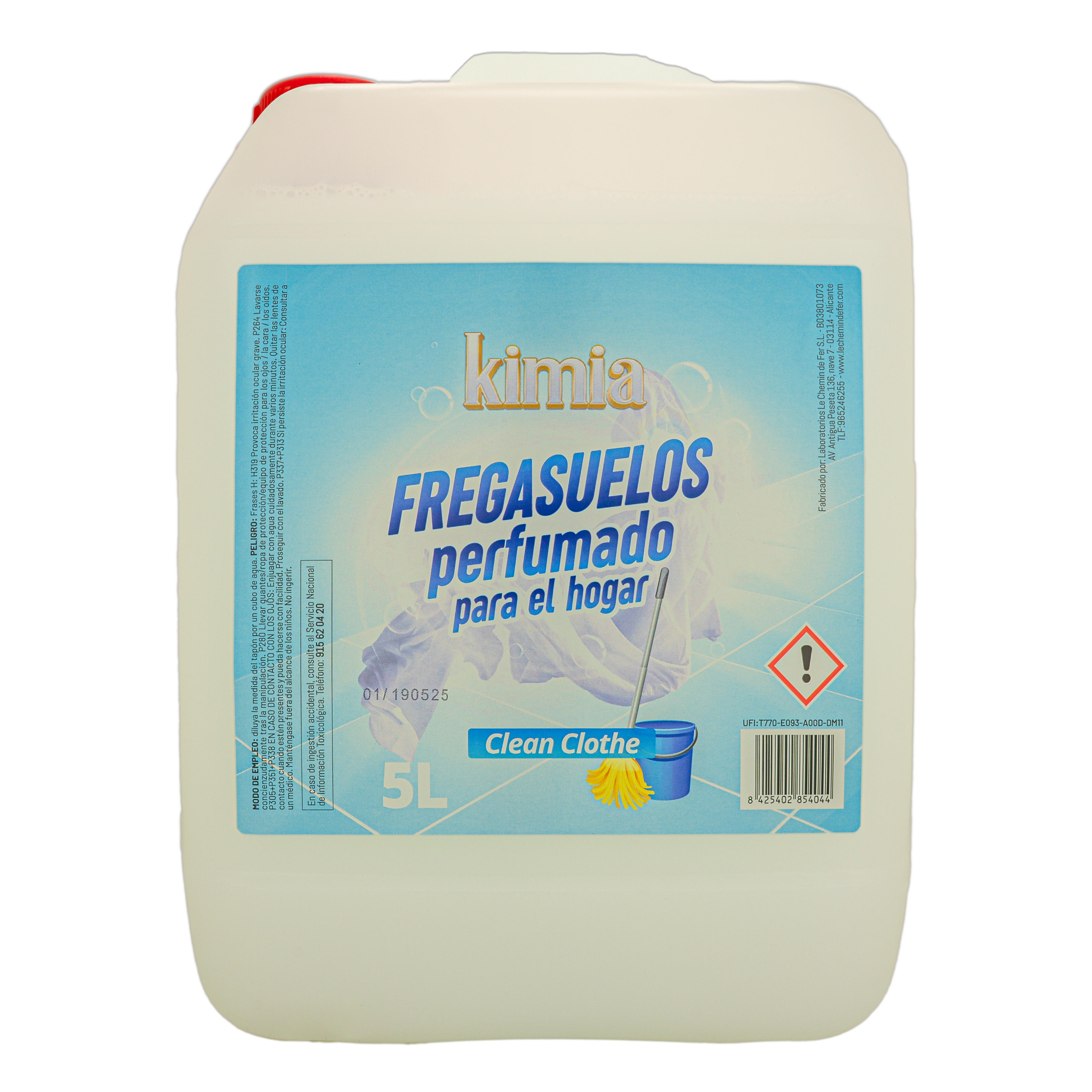 KIMIA - Fregasuelos Clean Clothe 5L | Fregasuelos Perfumado para Hogar | Limpiador de Suelo | Limpieza Profunda | Aroma a Ropa Limpia | Fragancia Fresca y Duradera | Para Todo Tipo de Superficies