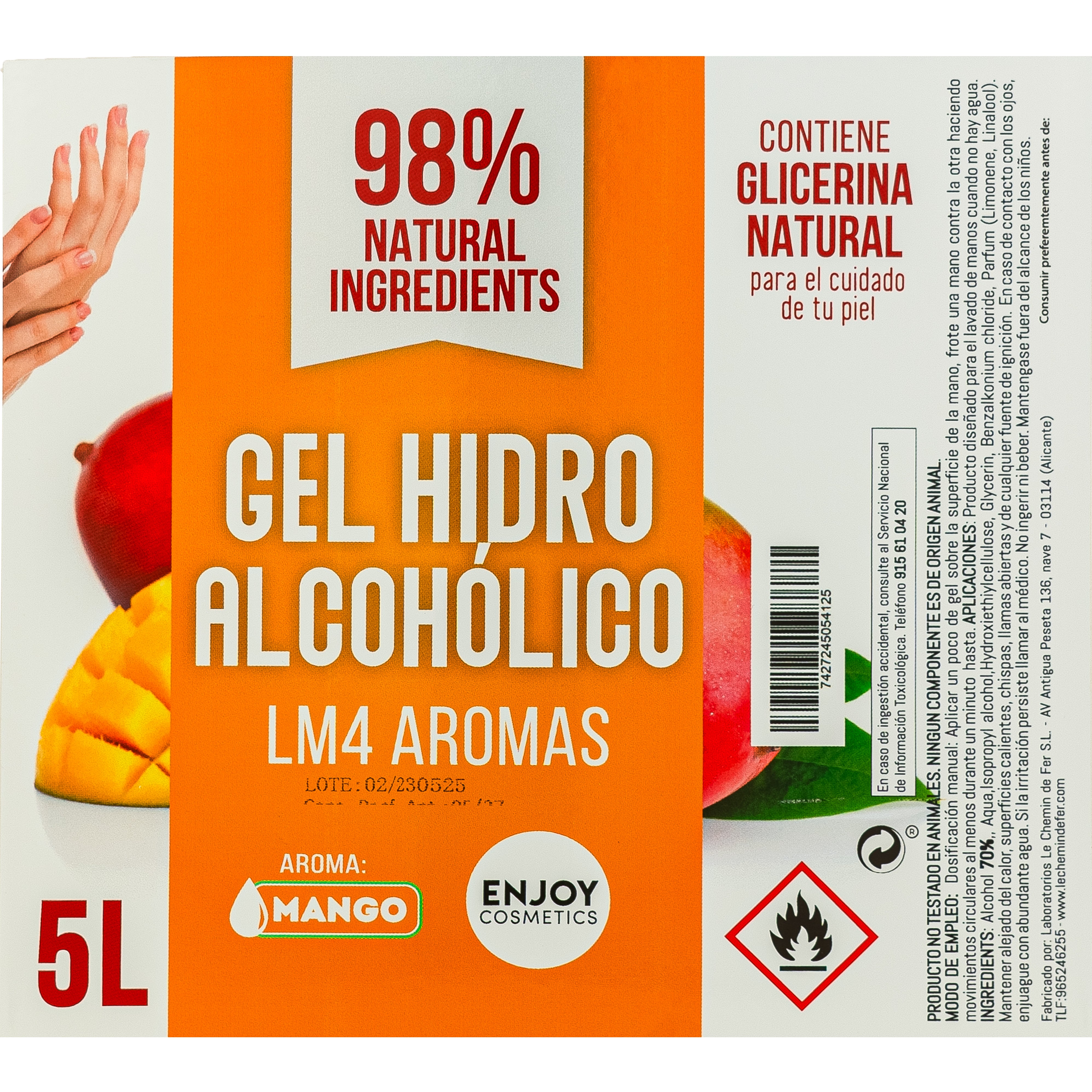 ENJOY COSMETICS - Gel Hidroalcohólico Aroma Suave a Mango 5L | 70% Alcohol | Con Glicerina Natural | Para el Cuidado de la Piel | 98% Ingredientes Naturales | Ideal para Casa y Comercios