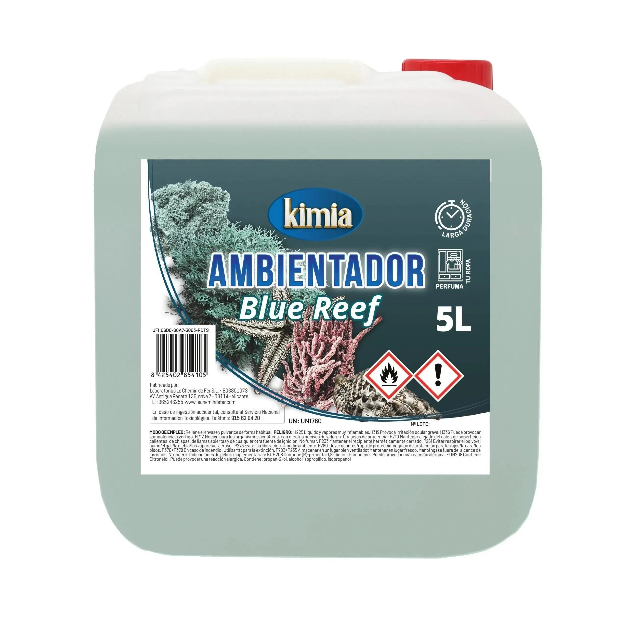 KIMIA | Pack Perfumador de Hogar Concentrado | Garrafa + Atomizador | Aroma Arrecife Azul | Ambientador Ideal para Hogar, Coche, Comercios y Hostelería | Concentración Alta en Esencias | 5L