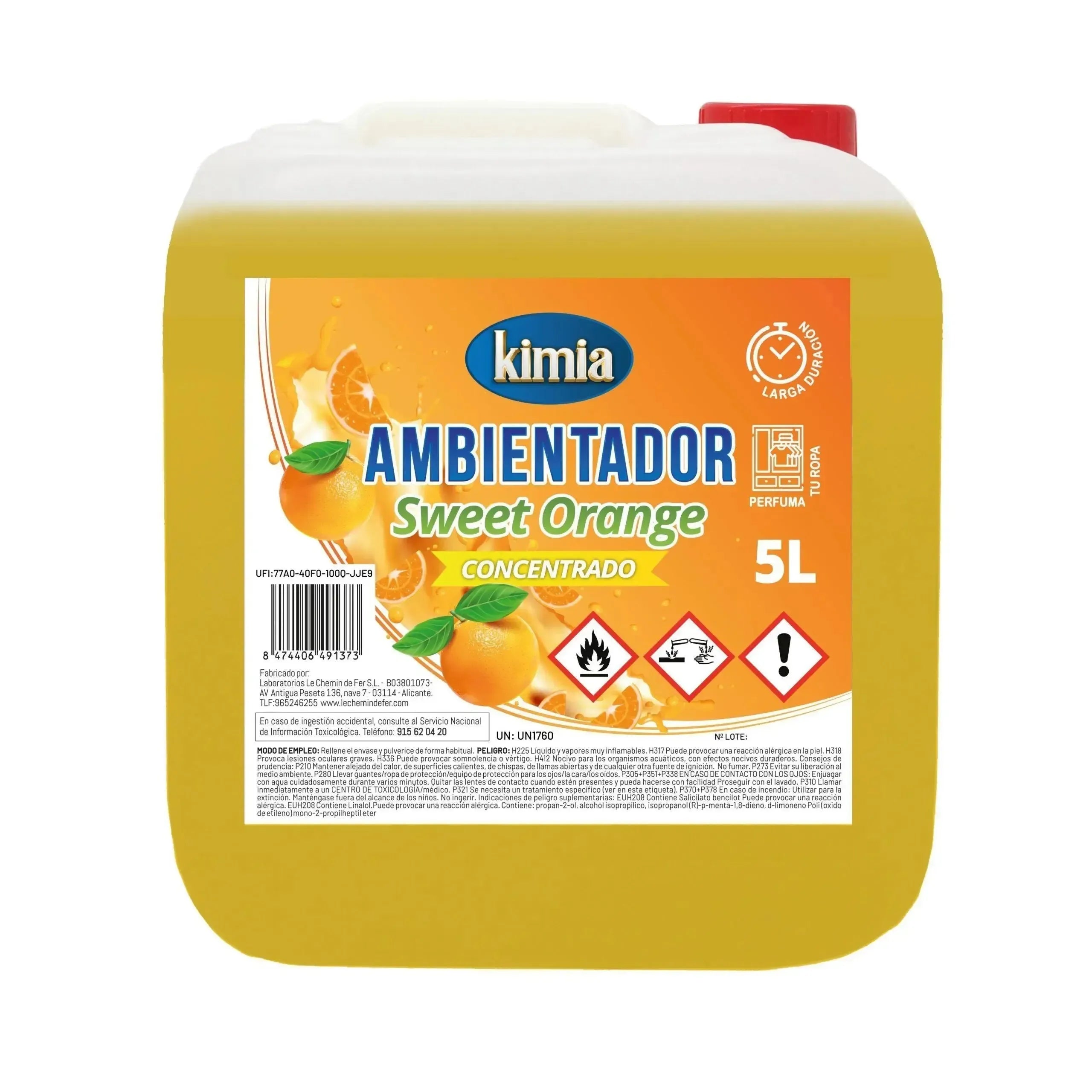 KIMIA | Pack Perfumador de Hogar Concentrado | Garrafa + Atomizador | Aroma Naranja Dulce | Ambientador Ideal para Hogar, Coche, Comercios y Hostelería | Concentración Alta en Esencias | 5L
