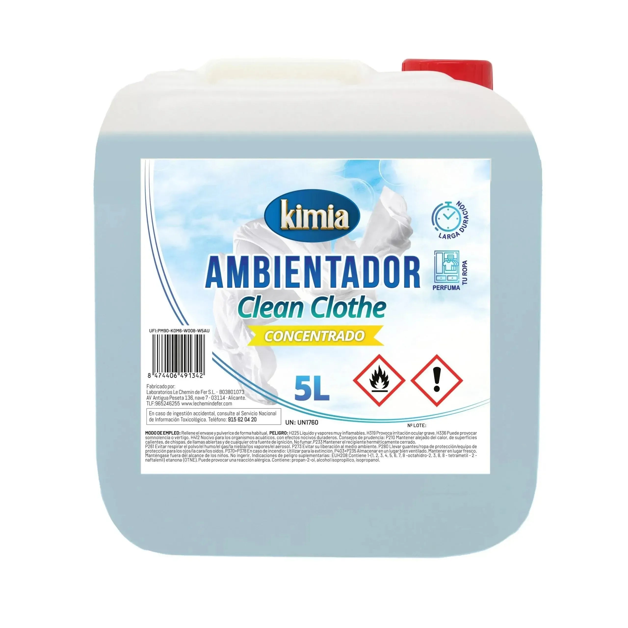 KIMIA | Pack Perfumador de Hogar Concentrado | Garrafa + Atomizador | Aroma Ropa Limpia | Ambientador Ideal para Hogar, Coche, Comercios y Hostelería | Concentración Alta en Esencias | 5L