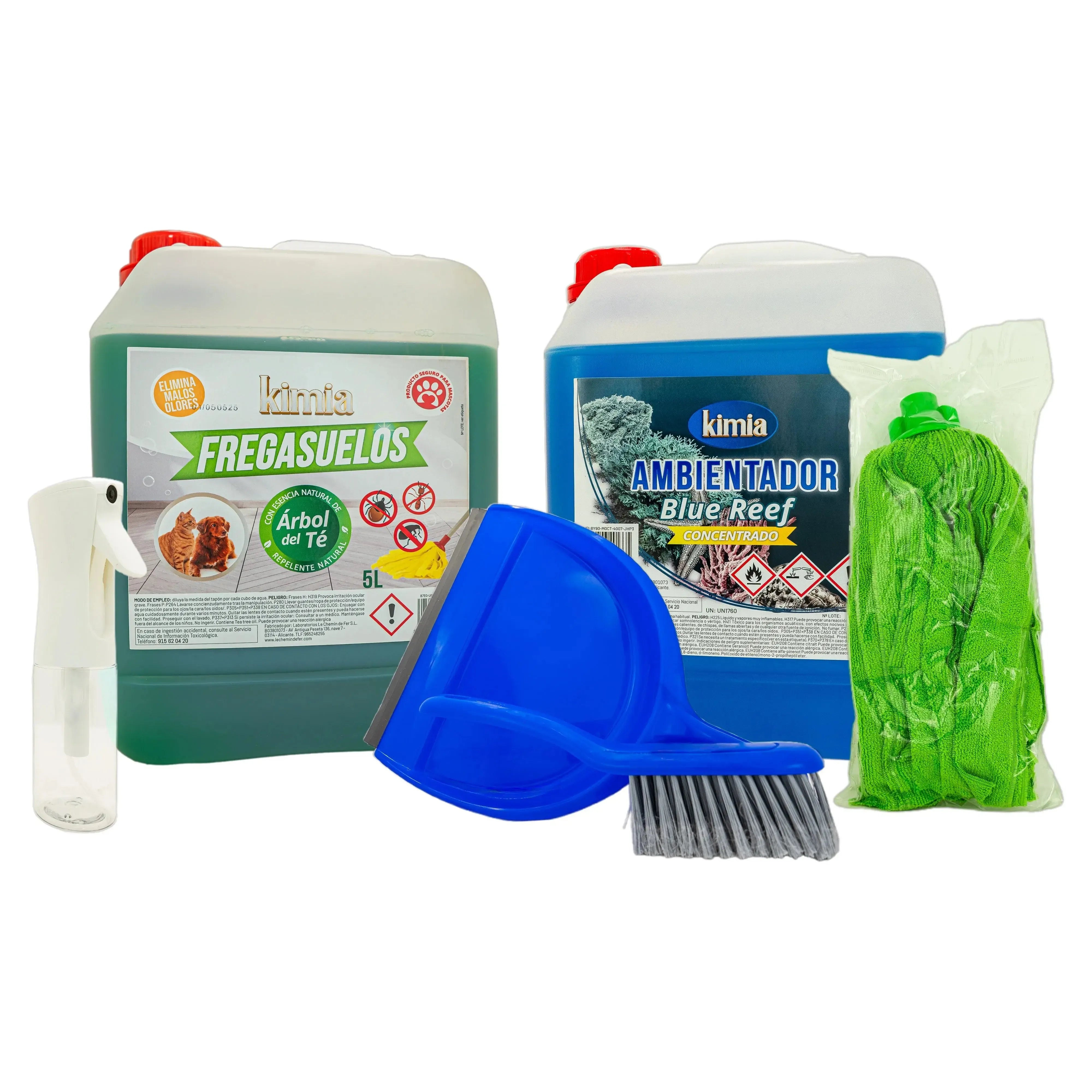 Kit completo: limpia suelos, perfuma estancias y facilita el mantenimiento diario con atomizador y útiles.