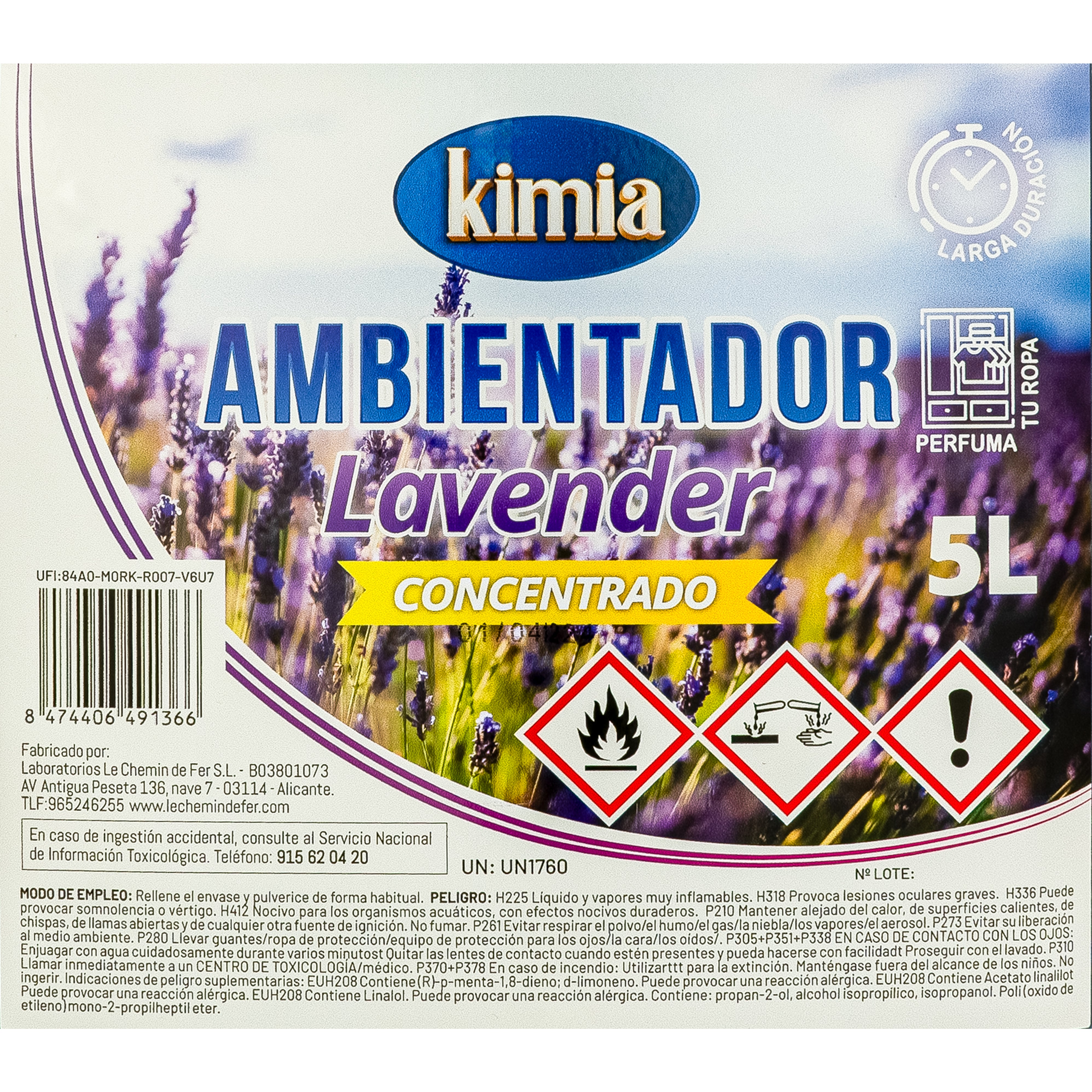 Fragancia lavender intensa y duradera que neutraliza olores y deja un ambiente relajante.